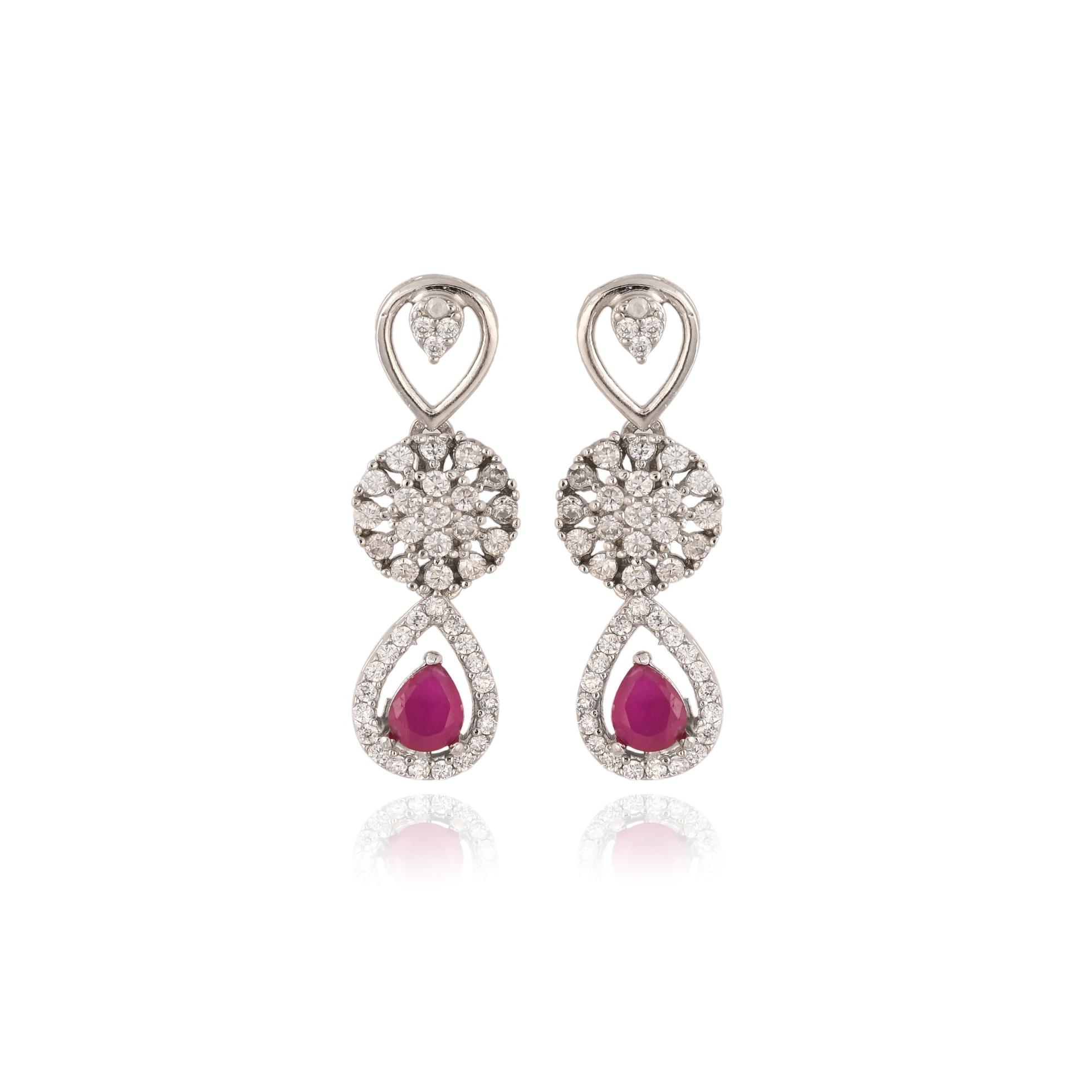 - A graceful blend of elegance and charm — the Ruhara Set features stunning ruby-red stones framed in delicate silver hearts, creating a timeless design that symbolizes love and radiance. ✨ Perfect for festive occasions or evening elegance 💎 92.5 Sterling Silver | Ruby Stones | CZ Detailing By Vedaro – Purity Meets Perfection.